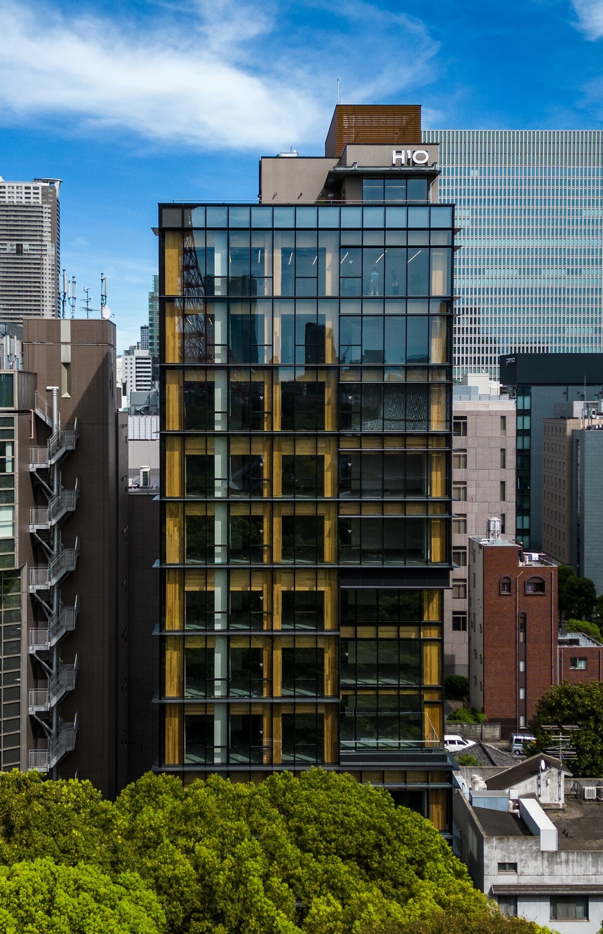 「H¹O芝公園」と「H¹O青山」は、野村不動産が建築主として事業企画及び設計監理、株式会社熊谷組が業務・資本提携した住友林業株式会社の木に関する知見を活用し、二社による共同設計を行いました。木質耐火部材使用による中高層オフィスビルの柱・梁一部の木造化によって、建築時のCO2排出量の大幅削減と、木材が成長段階で吸収するCO2の固定を実現。また、自然の心地よさを取り入れる“バイオフィリックデザイン”の思想に基づきながら、木材を随所に用いたラウンジや開放感あふれる屋上テラスなど充実した共用部も提供しています。