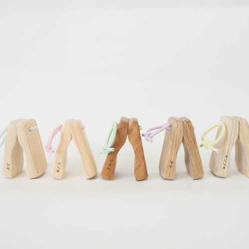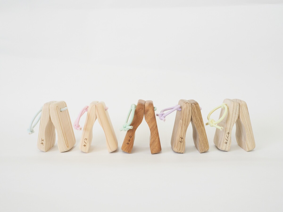 また、愛媛の木のおもちゃ「キノネ」は、木の種類によって音や質感が異なるカスタネット。無塗装仕上げで、赤ちゃんの歯固めとしても安心して使えます。どの商品も、まずは木そのものに触れる機会を少しでも増やしたいという気持ちで作っています。