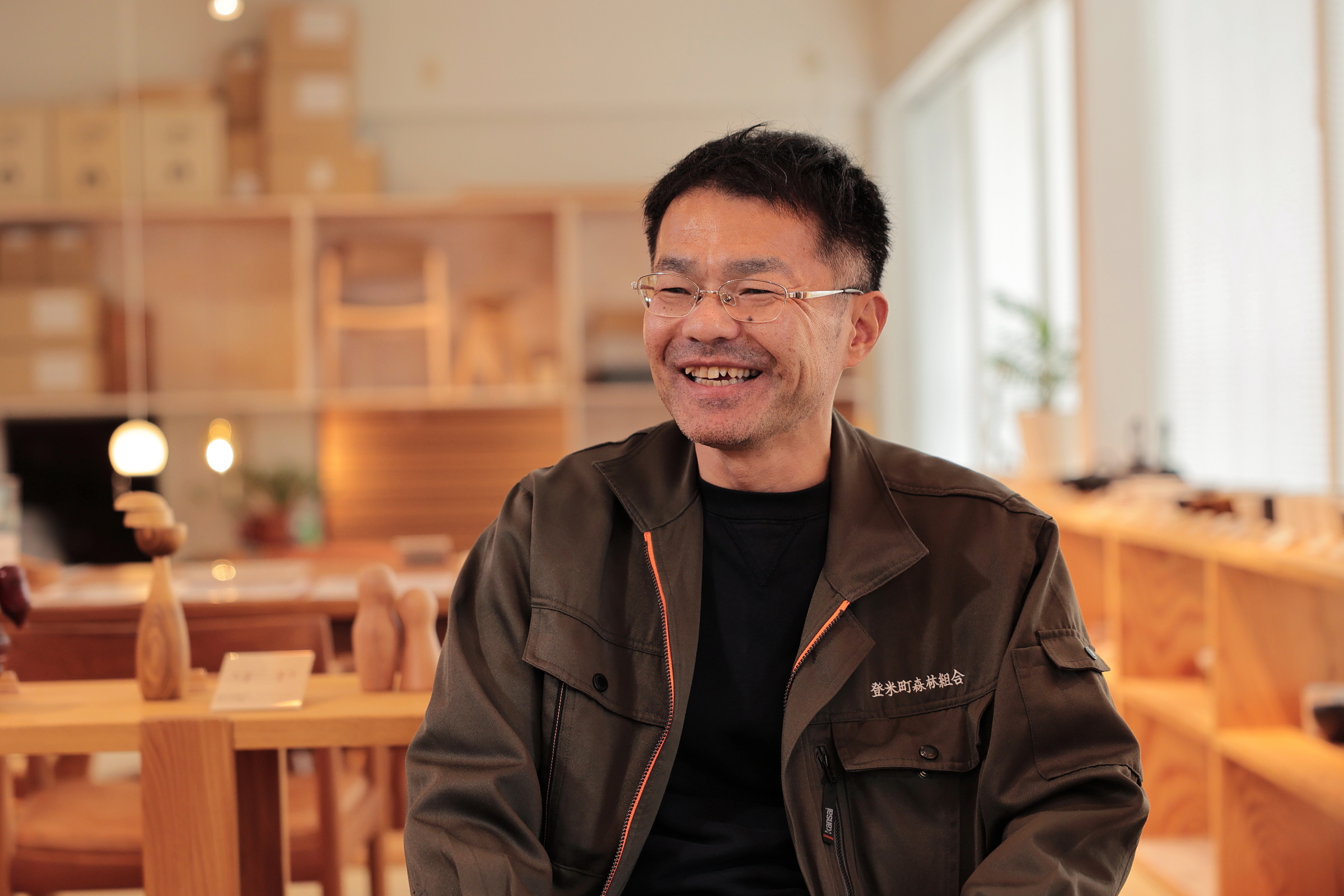「登米の里山に入ると、豊かな広葉樹林が広がっています。広葉樹の魅力は、何といっても樹種ごとの個性です。広葉樹は建築の仕上材から家具まで用途が幅広い。6次産業化した木材サプライチェーンを持っている私たちなら、伐採から製材までのコストを抑えることができます。私自身、学生の頃から広葉樹に大きな可能性を感じていました」と、登米町森林組合の會津浩幸課長は語ります。