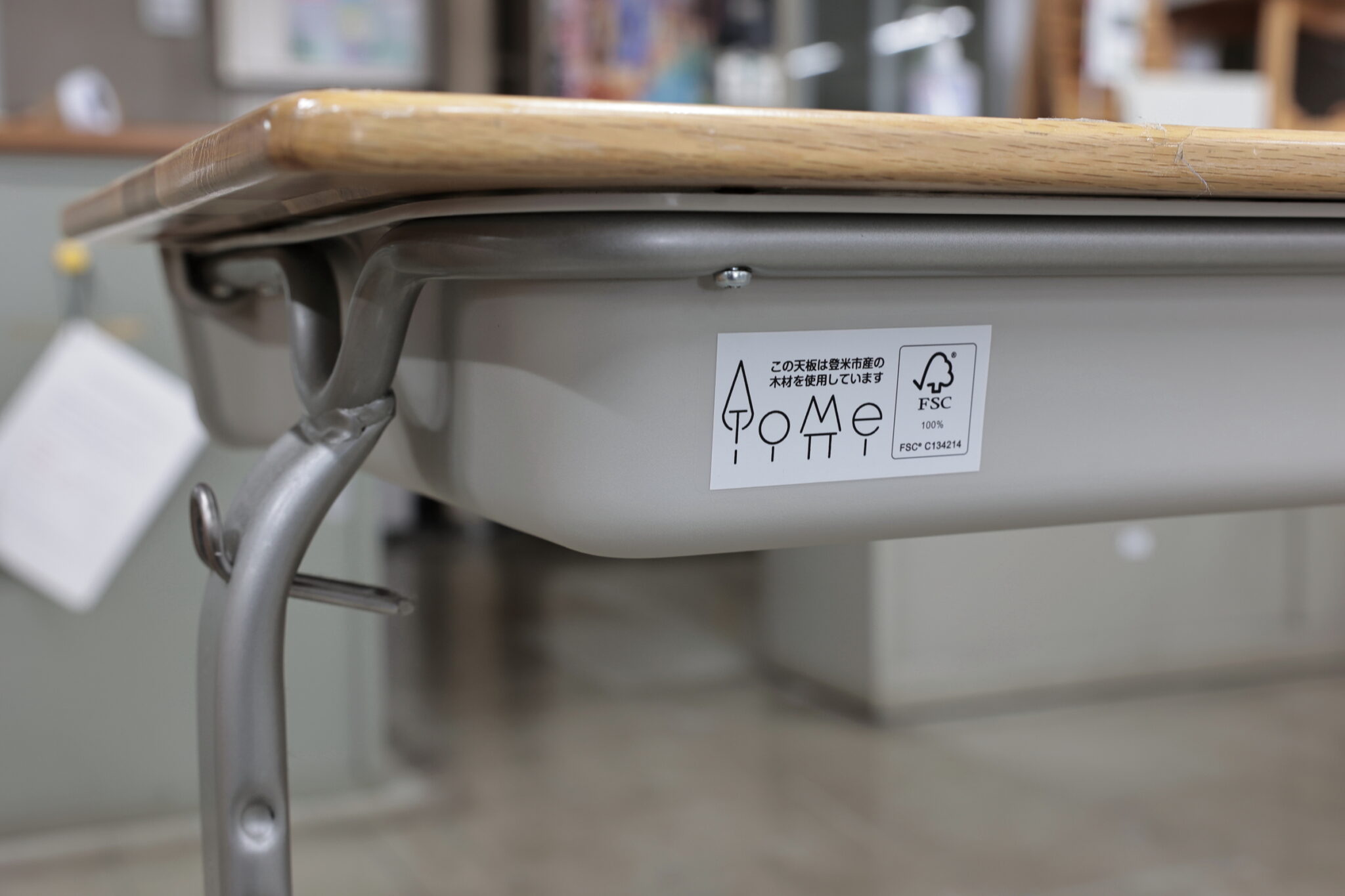 ナラ材は明るく温かみがあります。針葉樹に比べて硬質で傷もつきにくい。天板をJIS規格のスチール製机フレームのサイズに統一すれば、次回更新時は天板の交換だけで済むので、学童机のライフサイクルコストを削減できます。地元の木材を使用すれば郷土学習にもつながります。登米町森林組合は登米市教育委員会との協議を経て、入札仕様に登米産ナラ材を盛り込むことができました。