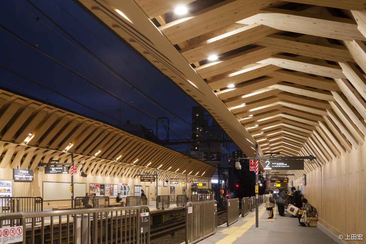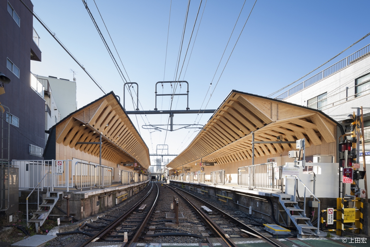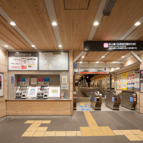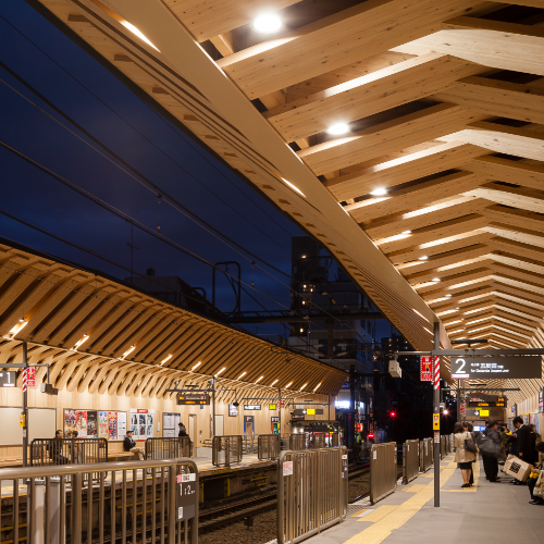 戸越銀座商店街の玄関口にふさわしい駅として、開業から約90年まちと一緒に歩んできた木造駅の趣や思いを継承しながら、どなたにも使いやすい駅にリニューアルしました。また合わせて木材を使用することでCO2削減や二酸化炭素固定化にも寄与する取り組みとして実施しました。